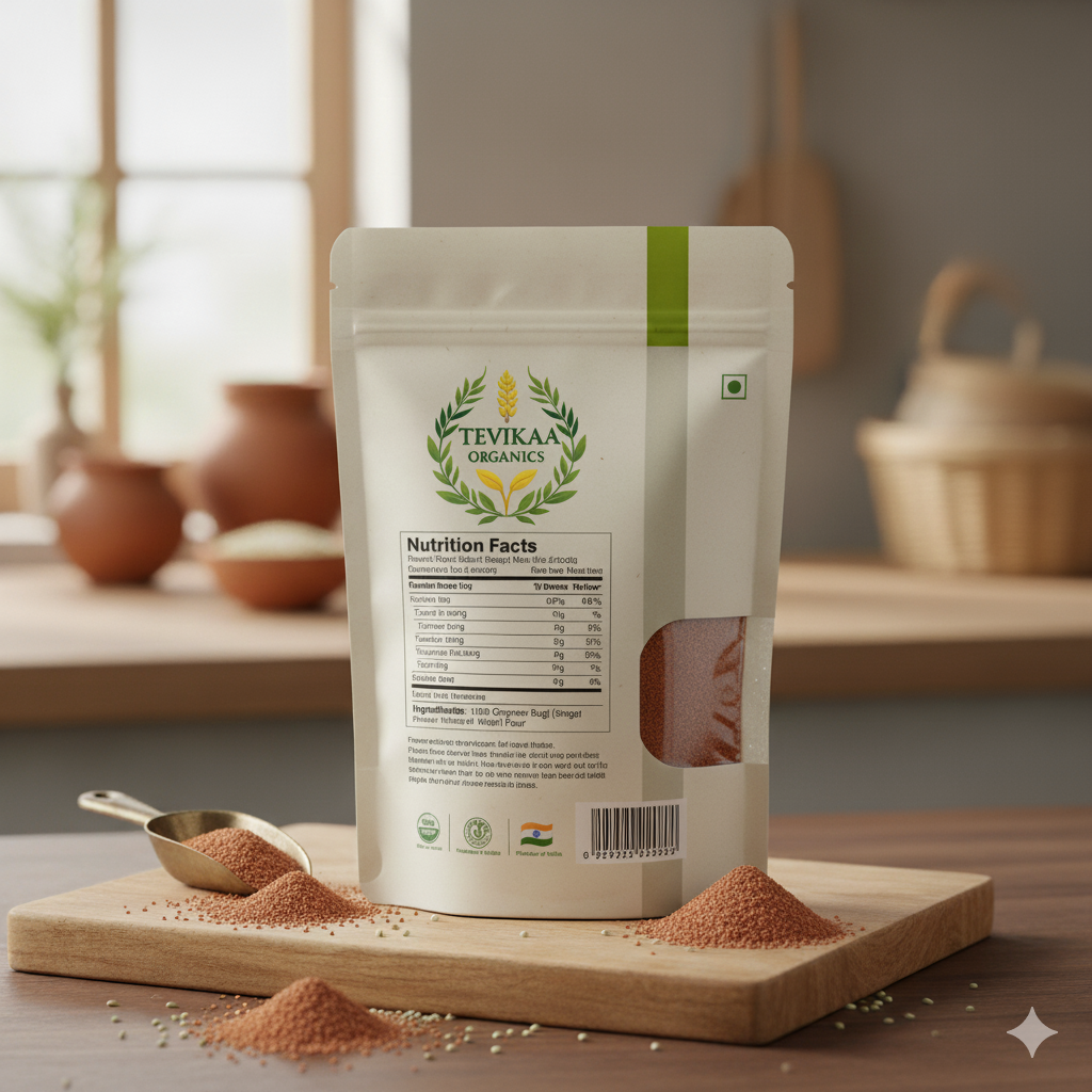 Known as the “Calcium King,” Tevikaa Organics Ragi strengthens bones and enhances immunity. Perfect for making healthy dosas, porridges, and baked snacks for all age groups.